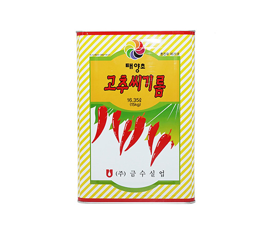 태양초 고추씨기름은 엄선된 양질의 고추씨만을 선별하여 최신 시설로 압착, 침전물 제거 및 이물질 여과 등의 공정을 거쳐 특유의 매운맛과 고소한 맛에